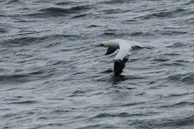 Al igual que en años anteriores uno de los principales protagonistas de ese paso fue el Alcatraz atlántico (Morus bassanus) que, en grupos más o menos numerosos, pasaban constantemente luciendo sus diferentes plumajes que, como ya conoceréis, van variando en función de su edad.