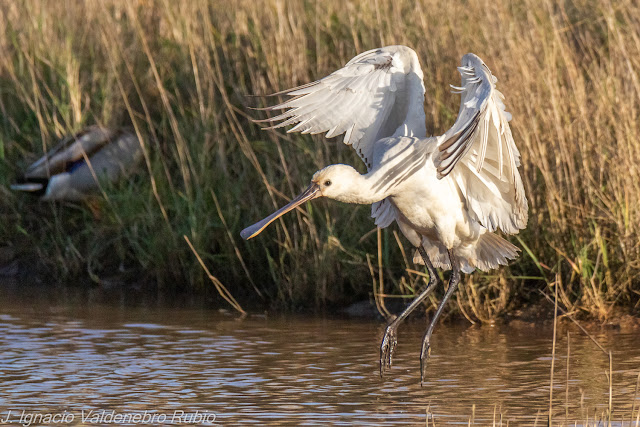 Mientras estas imágenes las podía captar con marea baja en uno de los regatos que se forman en la entrada de la ría, en las charcas del Cierrón los muchos aficionados que allí nos congregamos durante esos primeros días del mes de enero, pudimos observar y fotografiar a otro buen número de espátulas que se alimentaban y descansaban a escasos metros de la senda peatonal que discurre por allí.
