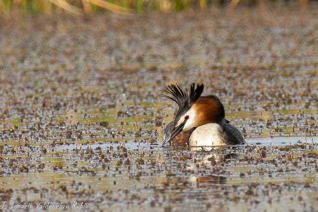 He considerado que merecía la pena dedicarle esta nueva entrada al Somormujo lavanco del que pude encontrar a varias parejas dedicadas a las tareas reproductivas y que me permitieron observar y fotografiar a algunos ejemplares exhibiendo sus mejores galas para, como viene siendo habitual, atraer a sus respectivas parejas.