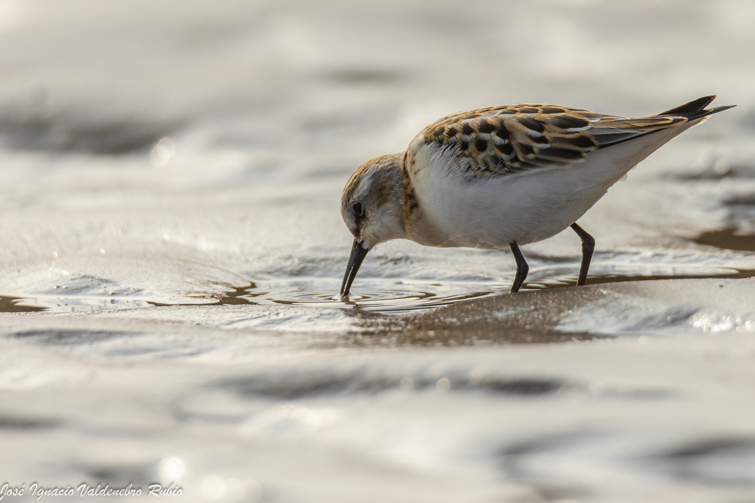 El segundo protagonista de esta entrada la voy a dedicar al ave limícola más pequeña que habitualmente podemos ver en nuestro país durante el paso migratorio y en la invernada, me estoy refiriendo al Correlimos menudo (Calidris minuta).